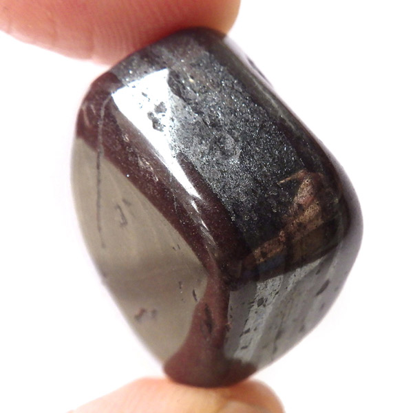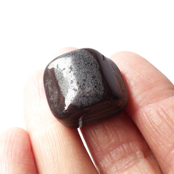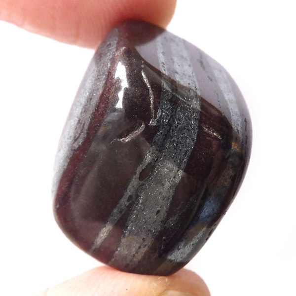ブラジルの縞状鉄鉱層から産出するアンセストラライトのタンブルです。アンセストラライトはレッドジャスパーとヘマタイトからなる一部地域から採れる石のこと。レッドジャスパーの赤は元々ヘマタイト(赤鉄鉱)によるものです。粒状鉄鉱層からスペキュラーヘマタイトのようにキラキラとしたヘマタイトが産出します。27億年程前の地層の石ということでアンセストラライト(祖先石)という愛称でも呼ばれております。クリムゾンレッドとシルバーの縞模様が面白く、キラキラとしたヘマタイトも魅力的です。