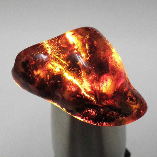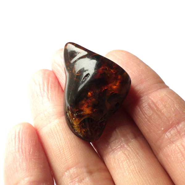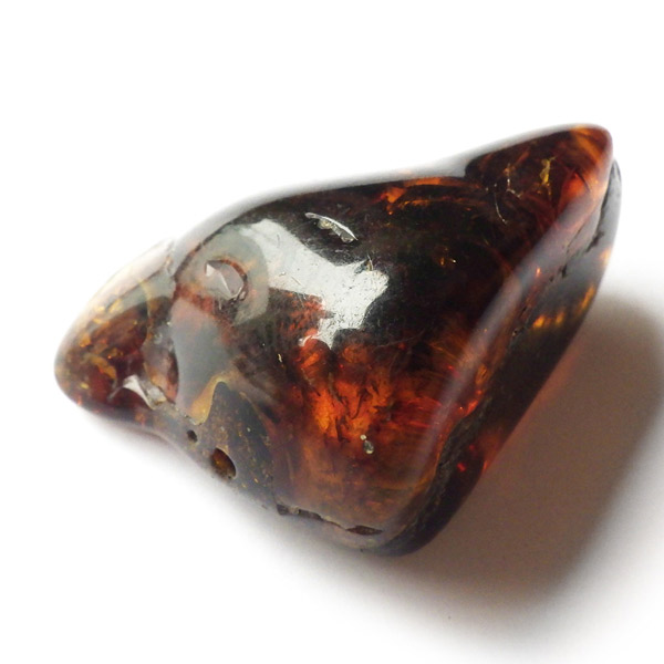 バルト海産のアンバー(琥珀)、タンブルです。 松柏類の樹脂が3000万年以上の時を経て化石化したもので、バルト海沿岸地方で多く産出し、紀元前2000年頃、ヨーロッパではすでに「アンバールート」という交易ルートがあったほど人気があったようです。 アンバーという名前は、古代アラビア語の「アンバール(海に漂うもの)」が由来です。樹脂を含む樹木が地殻変動などで海底に沈み、化石へと熟成され海岸に流れ着いたからで、「シー・アンバー」と呼ばれます。色が綺麗なことはもちろん光を通しても綺麗で美しいです。