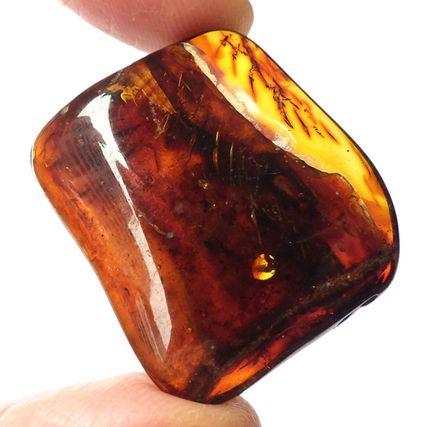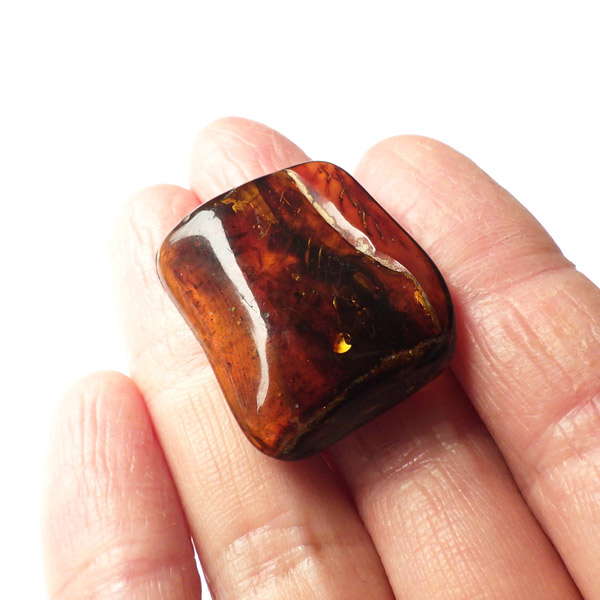 バルト海産のアンバー(琥珀)、タンブルです。 松柏類の樹脂が3000万年以上の時を経て化石化したもので、バルト海沿岸地方で多く産出し、紀元前2000年頃、ヨーロッパではすでに「アンバールート」という交易ルートがあったほど人気があったようです。 アンバーという名前は、古代アラビア語の「アンバール(海に漂うもの)」が由来です。樹脂を含む樹木が地殻変動などで海底に沈み、化石へと熟成され海岸に流れ着いたからで、「シー・アンバー」と呼ばれます。色が綺麗なことはもちろん光を通しても綺麗で美しいです。