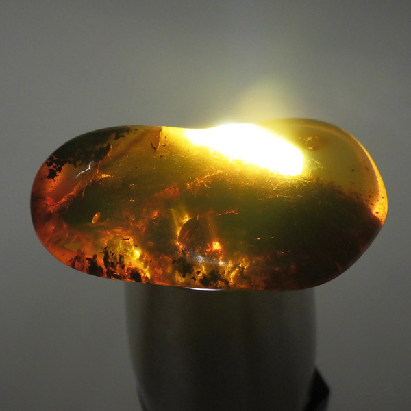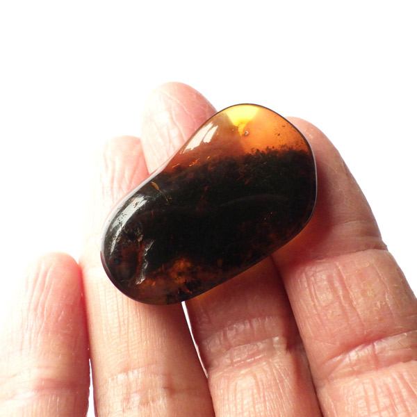 バルト海産のアンバー(琥珀)、タンブルです。 松柏類の樹脂が3000万年以上の時を経て化石化したもので、バルト海沿岸地方で多く産出し、紀元前2000年頃、ヨーロッパではすでに「アンバールート」という交易ルートがあったほど人気があったようです。 アンバーという名前は、古代アラビア語の「アンバール(海に漂うもの)」が由来です。樹脂を含む樹木が地殻変動などで海底に沈み、化石へと熟成され海岸に流れ着いたからで、「シー・アンバー」と呼ばれます。色が綺麗なことはもちろん光を通しても綺麗で美しいです。