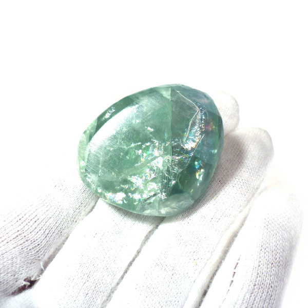 透明感のあるグリーンとギラギラなレインボーが目を惹くフローライト。フローライトの角度を動かすと分かりやすく内部の劈開面のレインボーが確認できます。手のひらで握る分にもちょうどよい大きさで石のパワーを感じられるかと思います。何より美しいですので、疲れた時などに、見て、触って、頭をすっきりさせてくれるようなフローライトの特有のものを感じて、リフレッシュしていただければと思います。