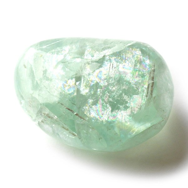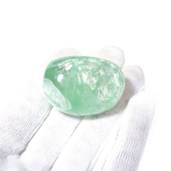 透明感のあるグリーンとギラギラなレインボーが目を惹くフローライト。フローライトの角度を動かすと分かりやすく内部の劈開面のレインボーが確認できます。手のひらで握る分にもちょうどよい大きさで石のパワーを感じられるかと思います。何より美しいですので、疲れた時などに、見て、触って、頭をすっきりさせてくれるようなフローライトの特有のものを感じて、リフレッシュしていただければと思います。