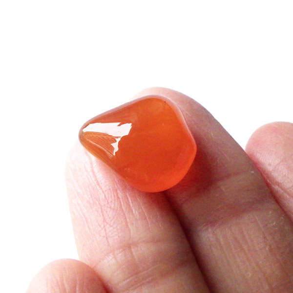 ボツワナ産カーネリアンのタンブルです。 発色が良く、濃いオレンジが美しいカーネリアンのタンブルを厳選しています。色ムラもほとんどなく、まるで綺麗なドロップのようです。
