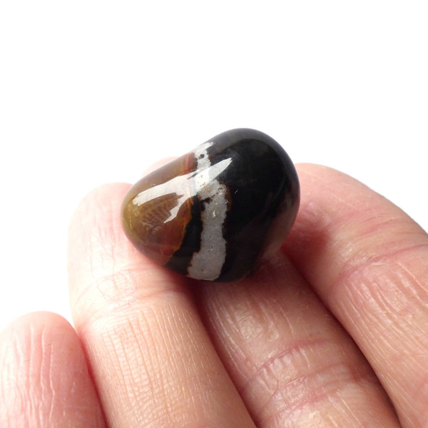 スレイマンはアゲート(瑪瑙)の中でも保護力がとても強い石で、古くから僧侶が悪魔祓いに使われてきました。 陰陽のバランス調整力に長け、過去世における深い固定観念である囚われた意識のネガティブなカルマや過去のトラウマからの解放も促します。さらにグラウディング力が強く、情緒的、肉体的なバランスを強化し、身体的エネルギーのバランスを安定させる作用がある石で、現実的にな解決へと導いてくれるといわれています。