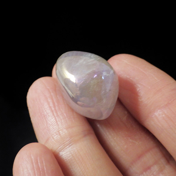 ブラジル産のアメジストオーラ、タンブルです。アメジストにオーラ加工を施しています。和名を「蒸着水晶」と付けられており、水晶に金属などを真空中の加熱により飛ばして表面に均一に焼き付ける処理を施しています。そのため、虹のような光沢が表れます。