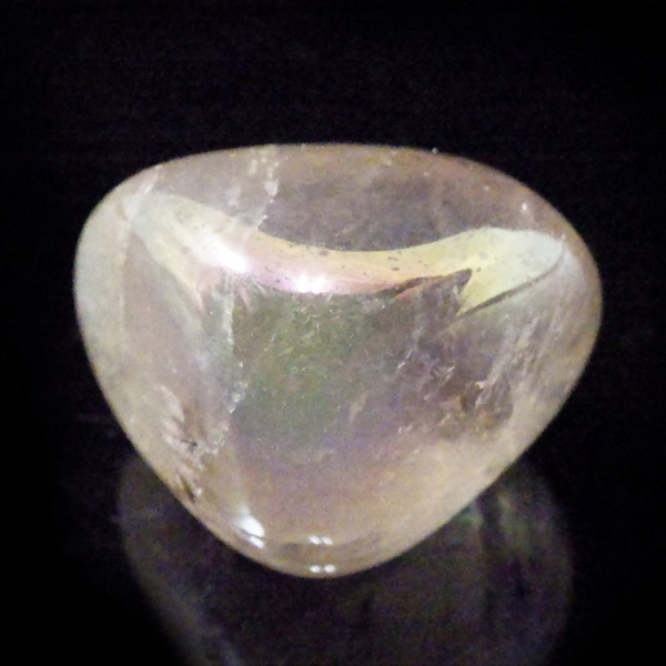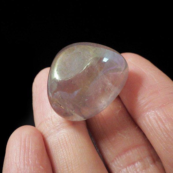 ブラジル産のアメジストオーラ、タンブルです。アメジストにオーラ加工を施しています。和名を「蒸着水晶」と付けられており、水晶に金属などを真空中の加熱により飛ばして表面に均一に焼き付ける処理を施しています。そのため、虹のような光沢が表れます。