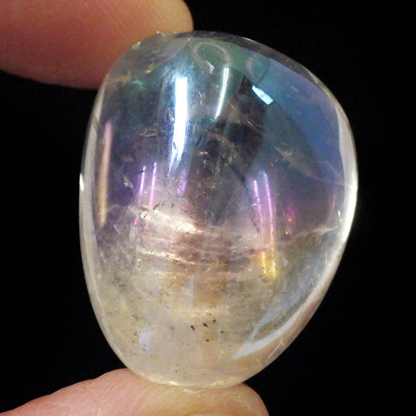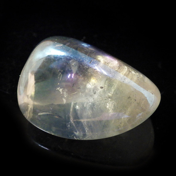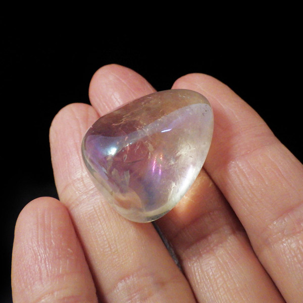 ブラジル産のアメジストオーラ、タンブルです。アメジストにオーラ加工を施しています。和名を「蒸着水晶」と付けられており、水晶に金属などを真空中の加熱により飛ばして表面に均一に焼き付ける処理を施しています。そのため、虹のような光沢が表れます。
