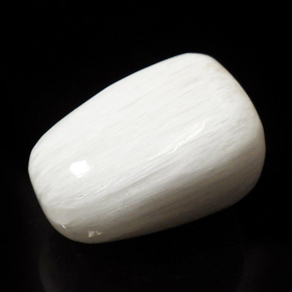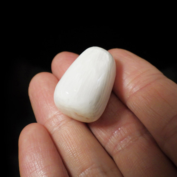 インド産の高品質スコレサイトのタンブルです。不純物の少ない高品質な真っ白スコレサイト。天使の羽みたいな繊維状の白色光沢が美しく、清らかなエネルギーを感じられる石です。直感力などを高めたり、過去の記憶を呼び起こして現在へと導く石と言われており、瞑想などにも適したヒーリングストーンです。ヒーラーに人気の石です。