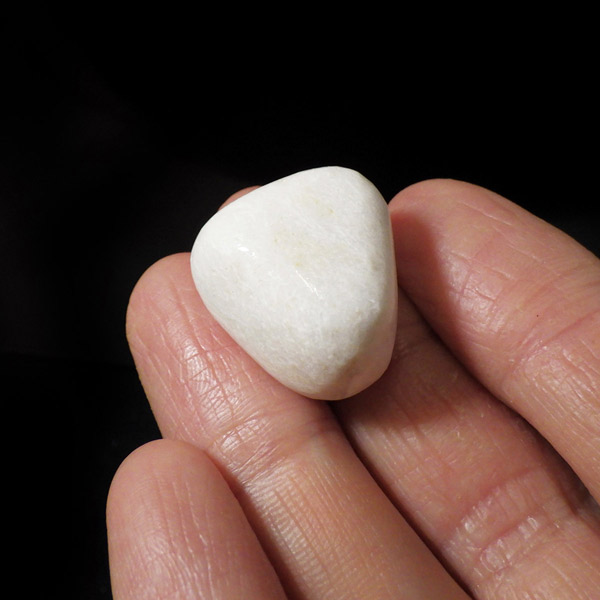 インド産のスコレサイトのタンブルです。天使の羽みたいな繊維状の白色光沢が美しく、清らかなエネルギーを感じられる石です。直感力などを高めたり、過去の記憶を呼び起こして現在へと導く石と言われており、瞑想などにも適したヒーリングストーンです。ヒーラーに人気の石です。