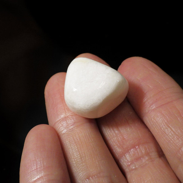 インド産のスコレサイトのタンブルです。天使の羽みたいな繊維状の白色光沢が美しく、清らかなエネルギーを感じられる石です。直感力などを高めたり、過去の記憶を呼び起こして現在へと導く石と言われており、瞑想などにも適したヒーリングストーンです。ヒーラーに人気の石です。