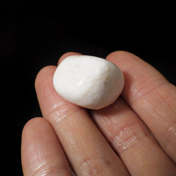 インド産のスコレサイトのタンブルです。天使の羽みたいな繊維状の白色光沢が美しく、清らかなエネルギーを感じられる石です。直感力などを高めたり、過去の記憶を呼び起こして現在へと導く石と言われており、瞑想などにも適したヒーリングストーンです。ヒーラーに人気の石です。