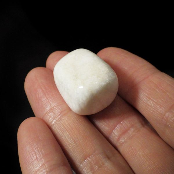 インド産のスコレサイトのタンブルです。天使の羽みたいな繊維状の白色光沢が美しく、清らかなエネルギーを感じられる石です。直感力などを高めたり、過去の記憶を呼び起こして現在へと導く石と言われており、瞑想などにも適したヒーリングストーンです。ヒーラーに人気の石です。