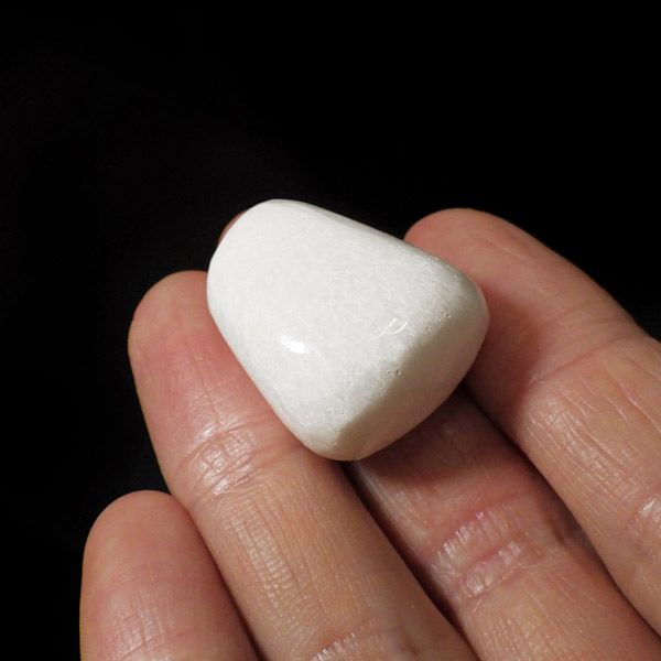 インド産のスコレサイトのタンブルです。天使の羽みたいな繊維状の白色光沢が美しく、清らかなエネルギーを感じられる石です。直感力などを高めたり、過去の記憶を呼び起こして現在へと導く石と言われており、瞑想などにも適したヒーリングストーンです。ヒーラーに人気の石です。