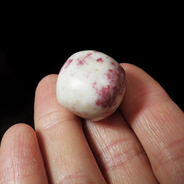 ペルー産のシナバークォーツ、タンブルです。ドロマイト入りの水晶の中に赤いシナバー(辰砂)の結晶が確認されます。ドラゴンブラッド(龍の血)ともいわれ、豊かさを引き寄せる石とされています。