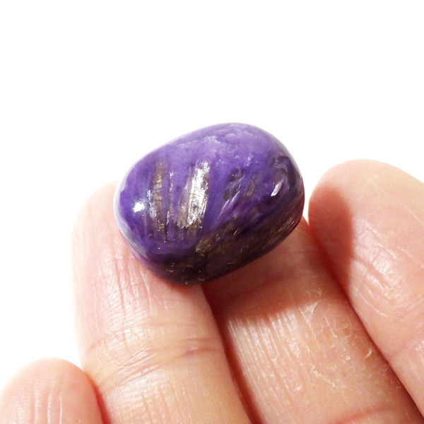 ロシア産のチャロアイト、タンブルです。はっきりとしたマーブル模様が浮き上がったチャロアイト。色・艶・模様とてもきれいで癒されます。チャロアイトはラリマー、スギライトと共に3大ヒーリングストーンの1つとされています。混ざりあった模様が面白く明るいパープルで高品質なチャロアイトです。