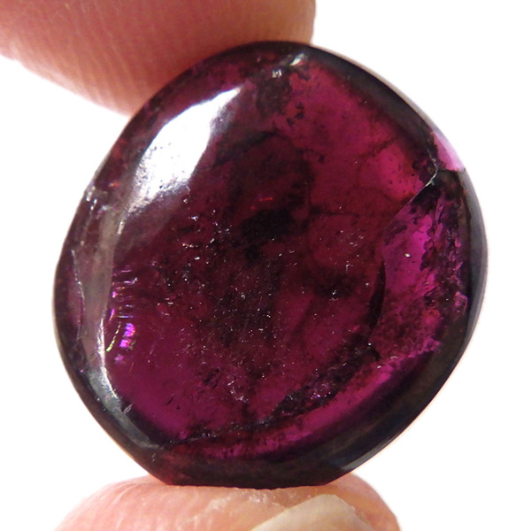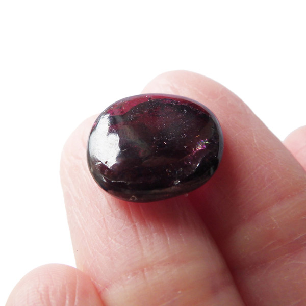 インド産ロードライトガーネット、タンブルです。ロードライトガーネットは紫帯びた赤のワインレッド色が非常に美しいガーネットのことです。アルマンディン(鉄礬柘榴石)とパイロープ(苦礬柘榴石)の混合ガーネットであり、貴重で高価、そして数少ないパワーストーンであることから、人気がとても高いストーンです。光に透かすとよりきれいな色彩が現れます。