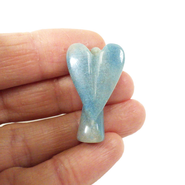 ブラジル産のトロレアイト、エンジェルです。きれいな丸磨きでとてもかわいい仕上がりのエンジェルです。トロレアイトは非常に珍しいリン酸塩鉱物で淡青緑色から青みがかった塊で見つかり、ラズライト、スコルザライトとの混合物のため、青く色付いています。発見者のスウェーデンのトロール氏にちなんで名付けられました。トロール=妖精という意味からアセンションストーン(碧い妖精の石)とも呼ばれています。日本ではトロール石とも呼ばれています。ブルーの濃淡や、色味がくすみカラーでかわいいです。