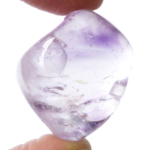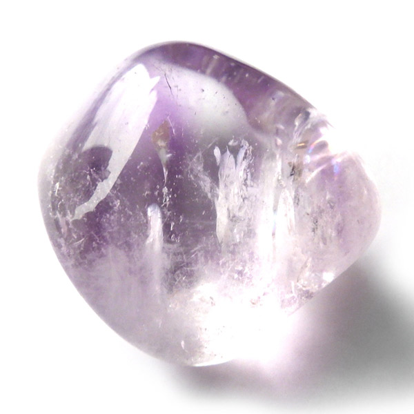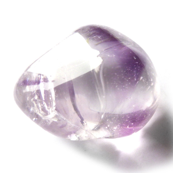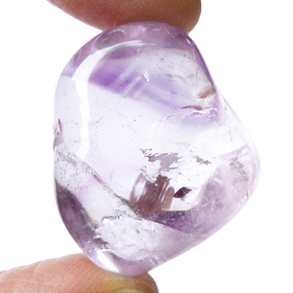 ブラジル産アメジストエレスチャル、タンブルです。エレスチャルは、水晶グループの中でも特に長い時間をかけて、特殊な成長過程を経て形成されたもののことを指し、「水晶の最終形態」とも言われています。エレスチャルの中でも、水晶の中にアメジスト部分が多く入っているものをアメジストエレスチャルと呼びます。非常に美しいインクルージョンでレインボーも確認できました。光に透かすと美しく、やっぱりいいなと見惚れてしまいます。透明度が高く紫色も濃いものは、なかなか手に入らないのでおすすめです。