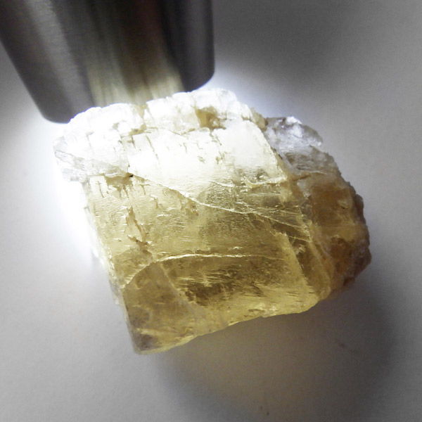 ミャンマー産、ペタライトの原石です。 ペタライト(ペタル石)は、無色透明のものが有名で1800年に発見された鉱物です。ペタライトはリチウムを豊富に含んだ準長石で、和名は破片が葉に似ていることから葉長石と呼ばれています。木の葉のように薄く剥離する完全な劈開を持つことが特徴。