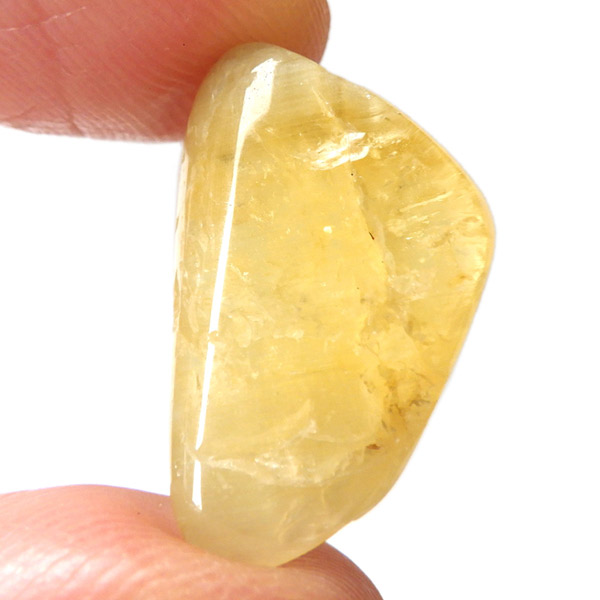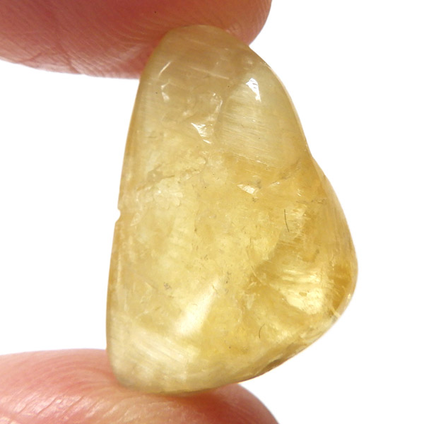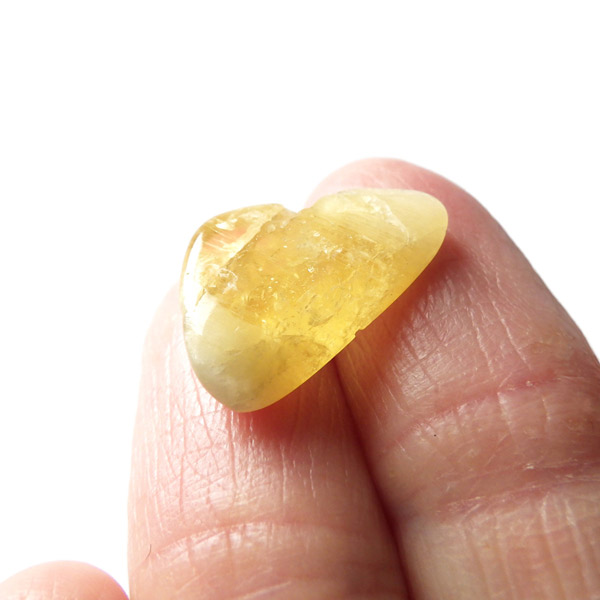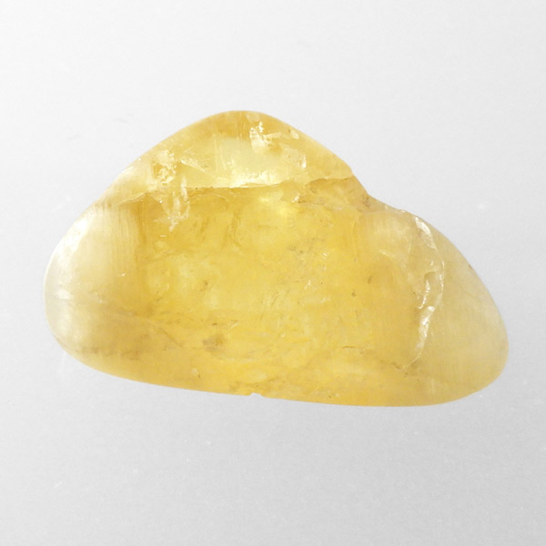 タンザニア産のゴールデンダンビュライト、タンブルです。ダンビュライトと言えば、透明度の高い結晶や、薄いピンク色の結晶がよく知られています。 光の反射が強く、屈折率が高いことから、良質な原石をカットすると水晶やトパーズよりも透明で澄んでいて、かつてダイアモンドの代用品として利用されていたこともあります。ところが、タンザニア産のダンビュライトは 明るいイエローの発色で、塊状で産するのが特徴です。