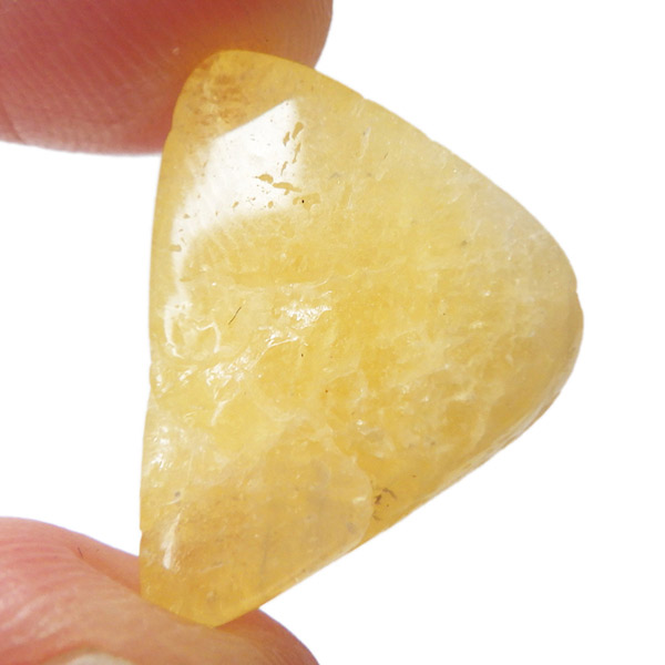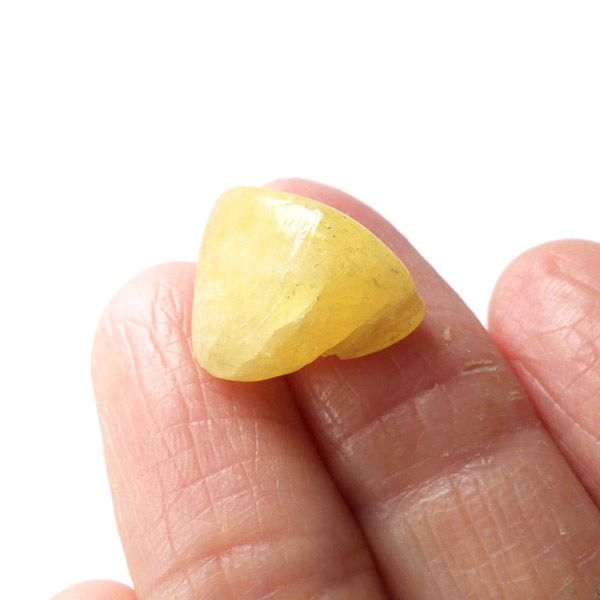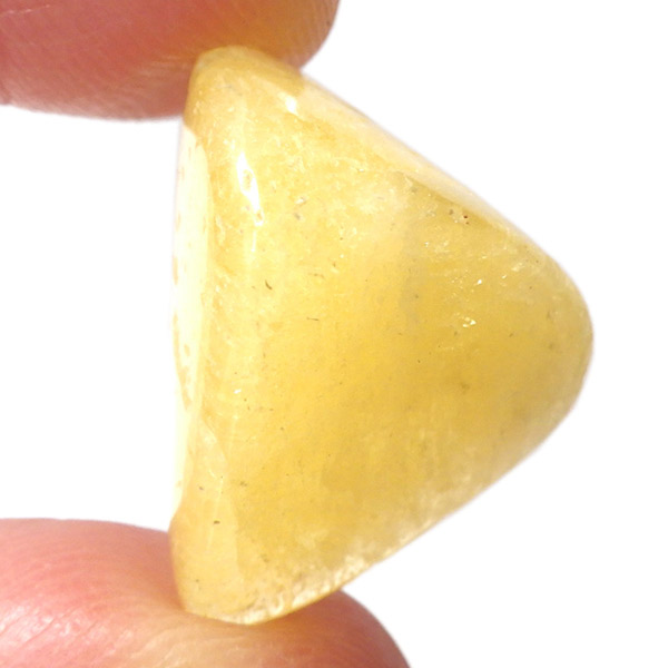 タンザニア産のゴールデンダンビュライト、タンブルです。ダンビュライトと言えば、透明度の高い結晶や、薄いピンク色の結晶がよく知られています。 光の反射が強く、屈折率が高いことから、良質な原石をカットすると水晶やトパーズよりも透明で澄んでいて、かつてダイアモンドの代用品として利用されていたこともあります。ところが、タンザニア産のダンビュライトは 明るいイエローの発色で、塊状で産するのが特徴です。