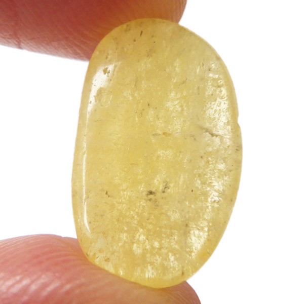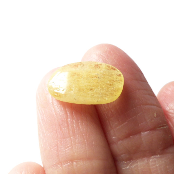 タンザニア産のゴールデンダンビュライト、タンブルです。ダンビュライトと言えば、透明度の高い結晶や、薄いピンク色の結晶がよく知られています。 光の反射が強く、屈折率が高いことから、良質な原石をカットすると水晶やトパーズよりも透明で澄んでいて、かつてダイアモンドの代用品として利用されていたこともあります。ところが、タンザニア産のダンビュライトは 明るいイエローの発色で、塊状で産するのが特徴です。