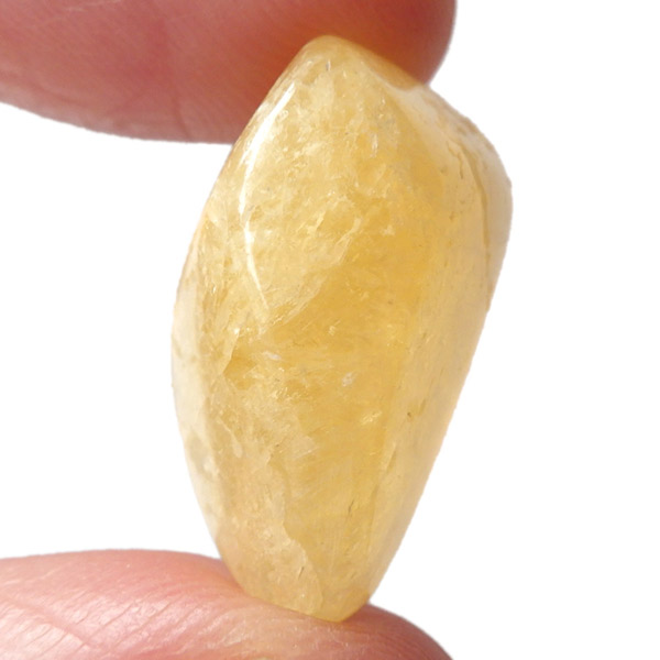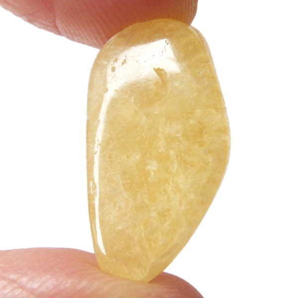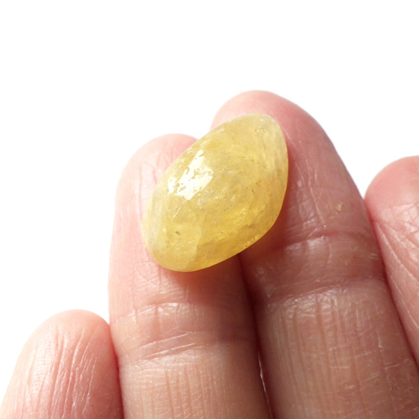 タンザニア産のゴールデンダンビュライト、タンブルです。ダンビュライトと言えば、透明度の高い結晶や、薄いピンク色の結晶がよく知られています。 光の反射が強く、屈折率が高いことから、良質な原石をカットすると水晶やトパーズよりも透明で澄んでいて、かつてダイアモンドの代用品として利用されていたこともあります。ところが、タンザニア産のダンビュライトは 明るいイエローの発色で、塊状で産するのが特徴です。