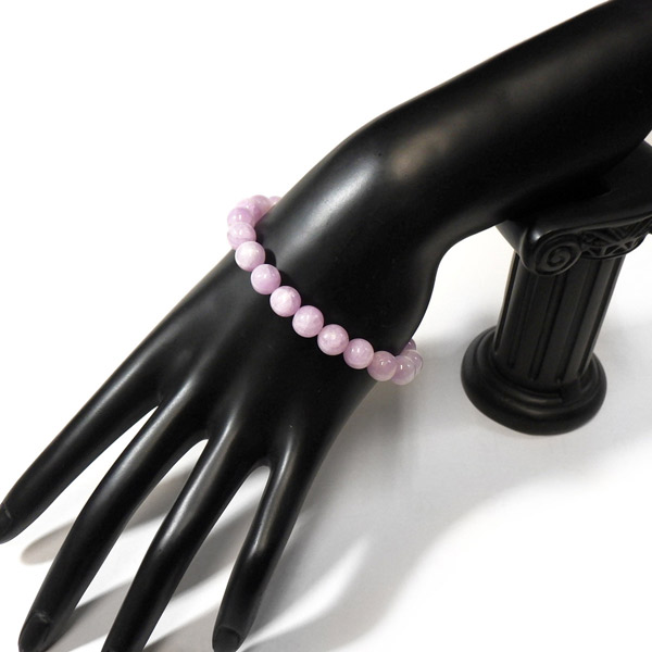 高品質ミルキークンツァイトのブレスレットです。クンツァイトは、1902年にカリフォルニア州で発見された比較的新しいパワーストーンですが、「スポデューメン」という鉱物の一種で、その中でピンク色のものをクンツァイトといいます。本商品は、ほんのりラベンダー色の優しい色合いのクンツァイトです。さり気なく手元を飾ることができ、大人の女性らしさが更に際立つでしょう。