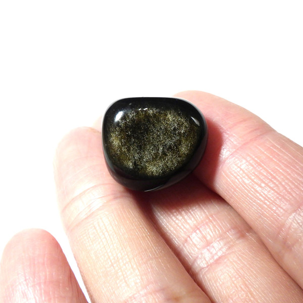 メキシコ産のシルバーオブシディアン、タンブルです。オブシディアンは和名で黒曜石。シルバーオブシディアンは黒曜石の中でもシルバーのシラー光沢を確認できる天然の火山ガラスです。シルバーオブシディアンはマグマが急速に冷却する際にナノ粒子が取り込まれ、その内包物によって引き起こされる光の干渉を持つ黒曜石のことです。角度によって現れるシルバーの輝きがシックでかっこいいです。
