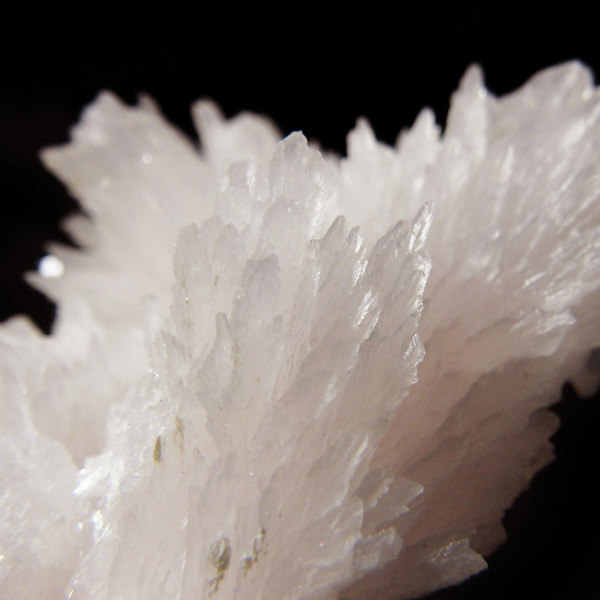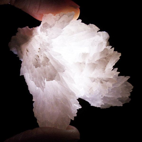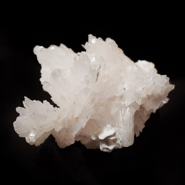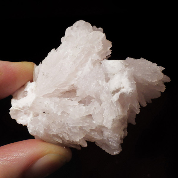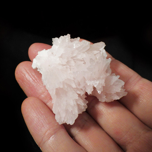 ペルー産ピンクカルサイト原石です。ピンクカルサイトはカルサイトの仲間です。マンガンが入っているので、淡く美しく、優しいピンク色になります。マンガンが含まれることにより、ブラックライトを当てると幻想的なピンク色に発光します。細やかに伸びた結晶が集合した美しい標本です。