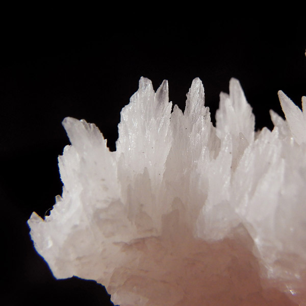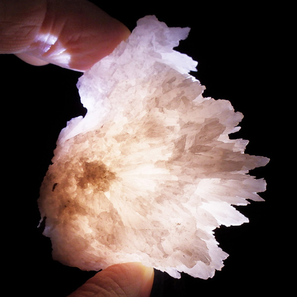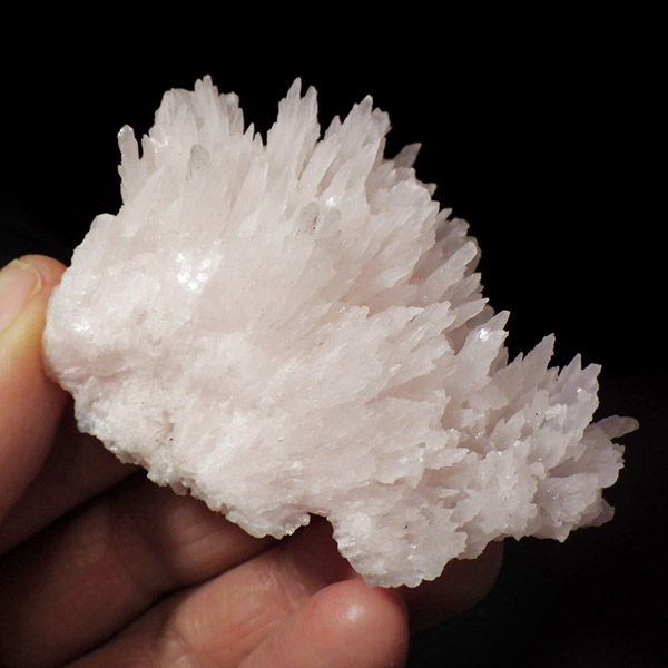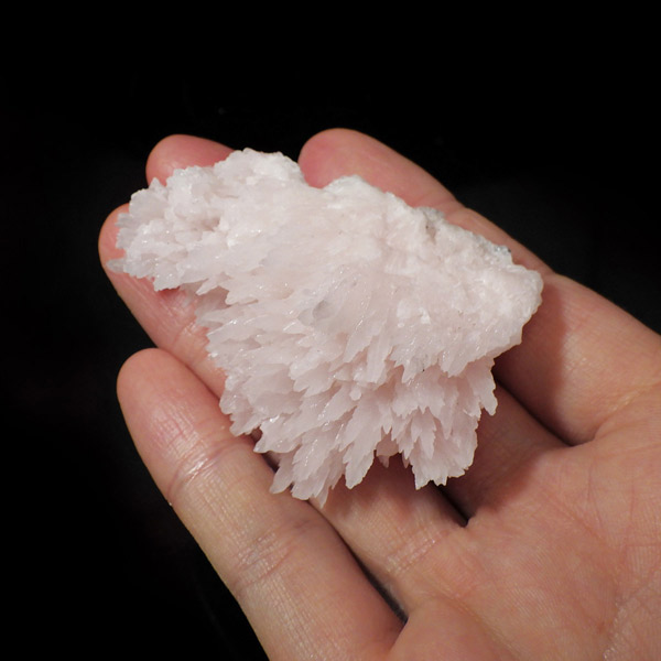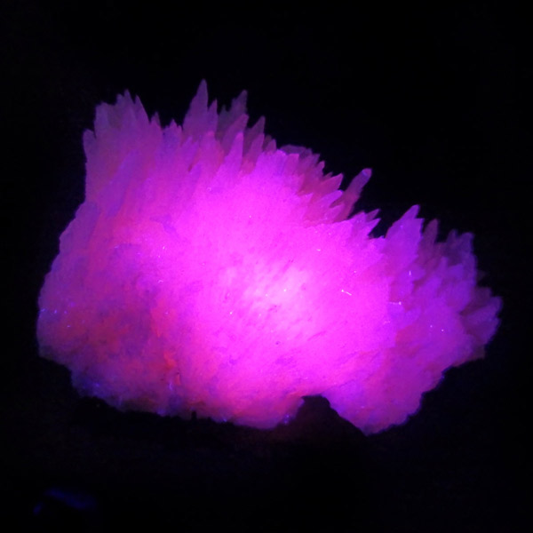 ペルー産ピンクカルサイト原石です。ピンクカルサイトはカルサイトの仲間です。マンガンが入っているので、淡く美しく、優しいピンク色になります。マンガンが含まれることにより、ブラックライトを当てると幻想的なピンク色に発光します。細やかに伸びた結晶が集合した美しい標本です。