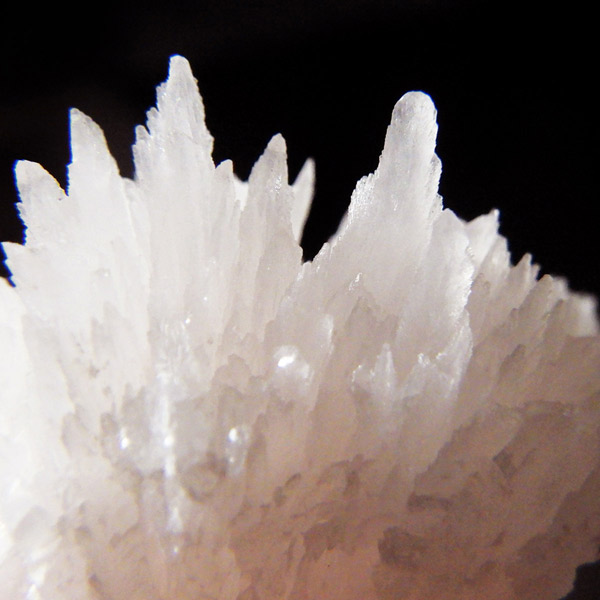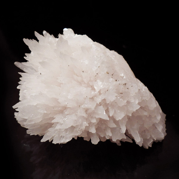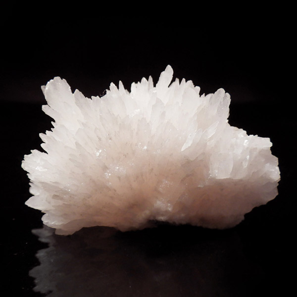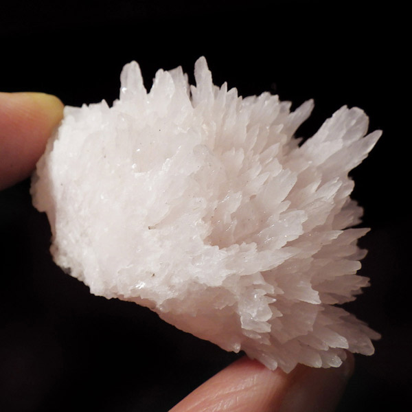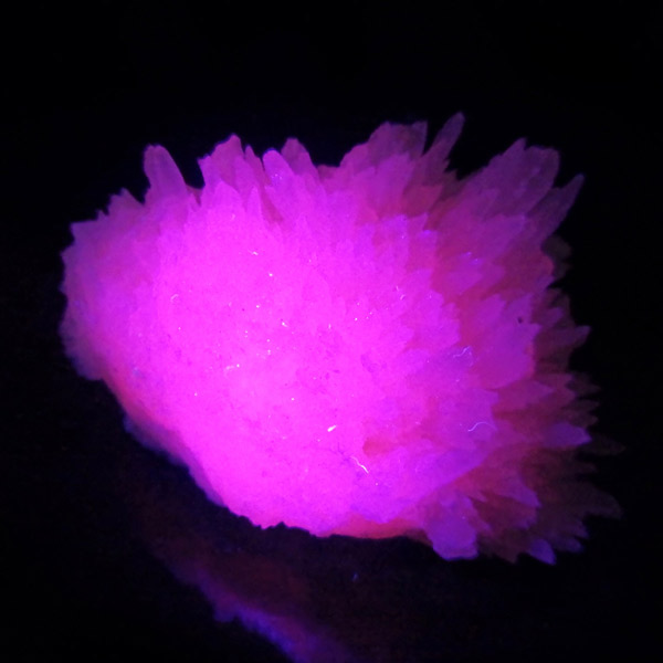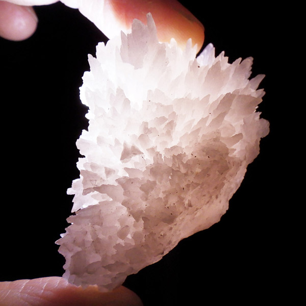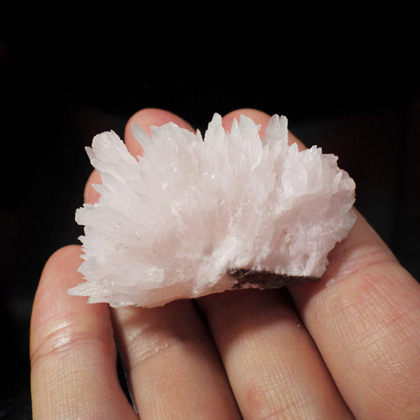 ペルー産ピンクカルサイト原石です。ピンクカルサイトはカルサイトの仲間です。マンガンが入っているので、淡く美しく、優しいピンク色になります。マンガンが含まれることにより、ブラックライトを当てると幻想的なピンク色に発光します。細やかに伸びた結晶が集合した美しい標本です。