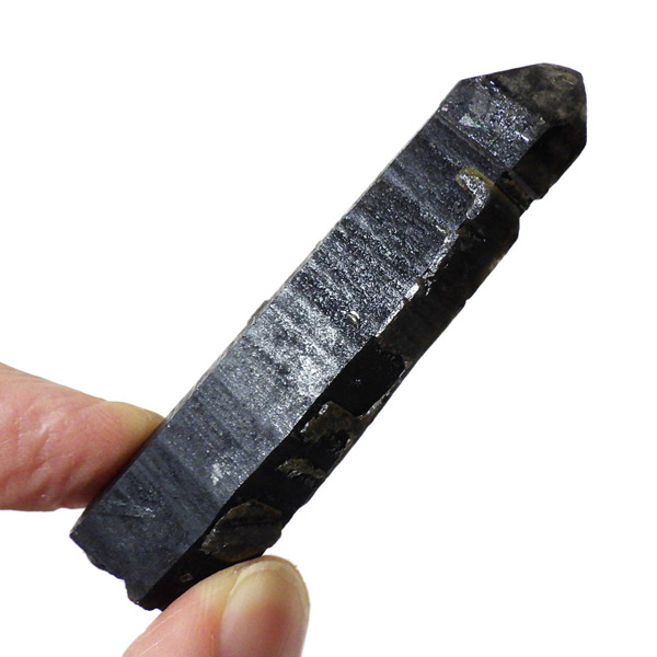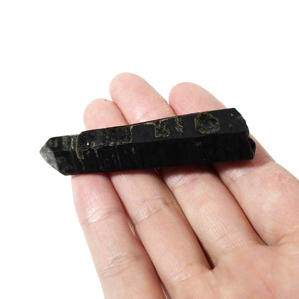 内モンゴル産のモリオン原石ポイントです。 スモーキークォーツの中で、黒色が強く真っ黒な黒水晶をモリオンと呼びます。明確な境界の定義はありませんが、表面が黒光りするものをモリオンと呼んでいます。人によっては光を通すものをケアンゴームと呼ぶ場合もあります。モリオンは水晶の成長過程で微量のアルミニウムが放射性鉱物などの影響を受けると黒色に変色するといわれています。