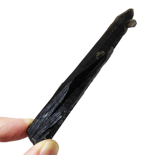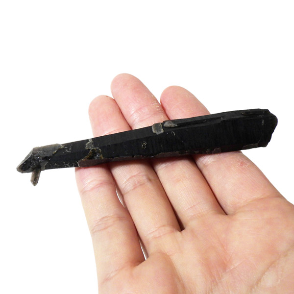 内モンゴル産のモリオン原石ポイントです。 スモーキークォーツの中で、黒色が強く真っ黒な黒水晶をモリオンと呼びます。明確な境界の定義はありませんが、表面が黒光りするものをモリオンと呼んでいます。人によっては光を通すものをケアンゴームと呼ぶ場合もあります。モリオンは水晶の成長過程で微量のアルミニウムが放射性鉱物などの影響を受けると黒色に変色するといわれています。