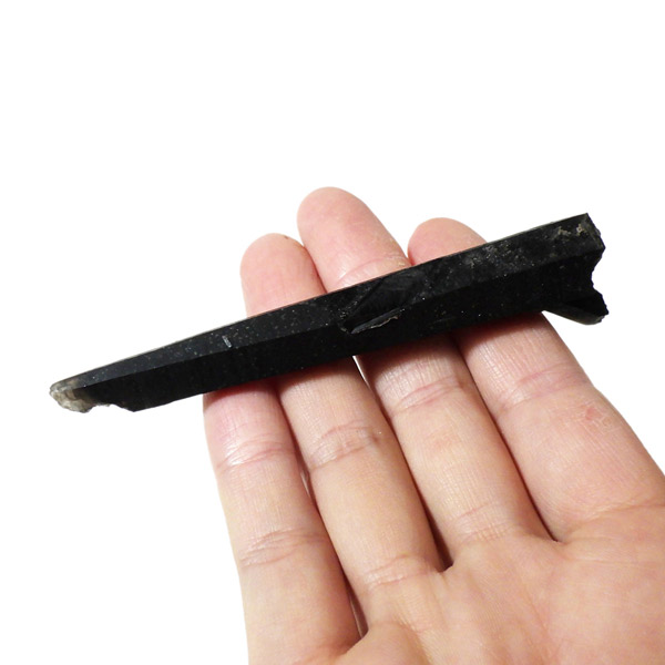 内モンゴル産のモリオン原石ポイントです。 スモーキークォーツの中で、黒色が強く真っ黒な黒水晶をモリオンと呼びます。明確な境界の定義はありませんが、表面が黒光りするものをモリオンと呼んでいます。人によっては光を通すものをケアンゴームと呼ぶ場合もあります。モリオンは水晶の成長過程で微量のアルミニウムが放射性鉱物などの影響を受けると黒色に変色するといわれています。