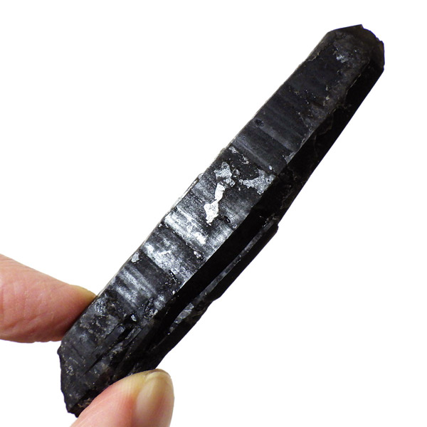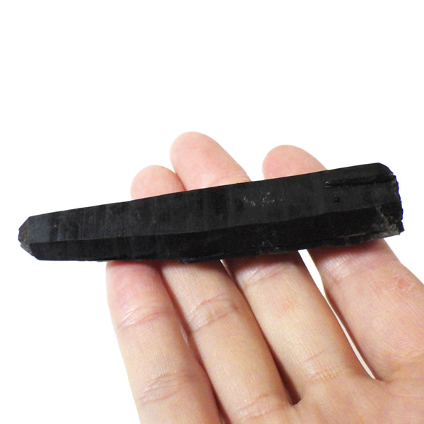 内モンゴル産のモリオン原石ポイントです。 スモーキークォーツの中で、黒色が強く真っ黒な黒水晶をモリオンと呼びます。明確な境界の定義はありませんが、表面が黒光りするものをモリオンと呼んでいます。人によっては光を通すものをケアンゴームと呼ぶ場合もあります。モリオンは水晶の成長過程で微量のアルミニウムが放射性鉱物などの影響を受けると黒色に変色するといわれています。