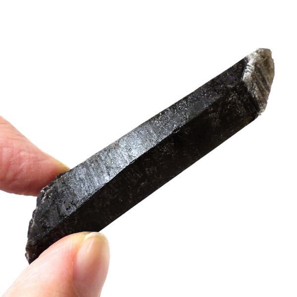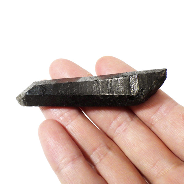 内モンゴル産のモリオン原石ポイントです。 スモーキークォーツの中で、黒色が強く真っ黒な黒水晶をモリオンと呼びます。明確な境界の定義はありませんが、表面が黒光りするものをモリオンと呼んでいます。人によっては光を通すものをケアンゴームと呼ぶ場合もあります。モリオンは水晶の成長過程で微量のアルミニウムが放射性鉱物などの影響を受けると黒色に変色するといわれています。