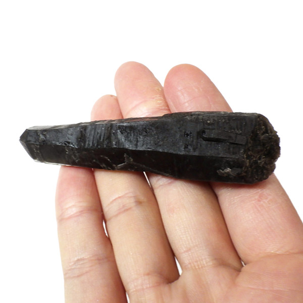 内モンゴル産のモリオン原石ポイントです。 スモーキークォーツの中で、黒色が強く真っ黒な黒水晶をモリオンと呼びます。明確な境界の定義はありませんが、表面が黒光りするものをモリオンと呼んでいます。人によっては光を通すものをケアンゴームと呼ぶ場合もあります。モリオンは水晶の成長過程で微量のアルミニウムが放射性鉱物などの影響を受けると黒色に変色するといわれています。