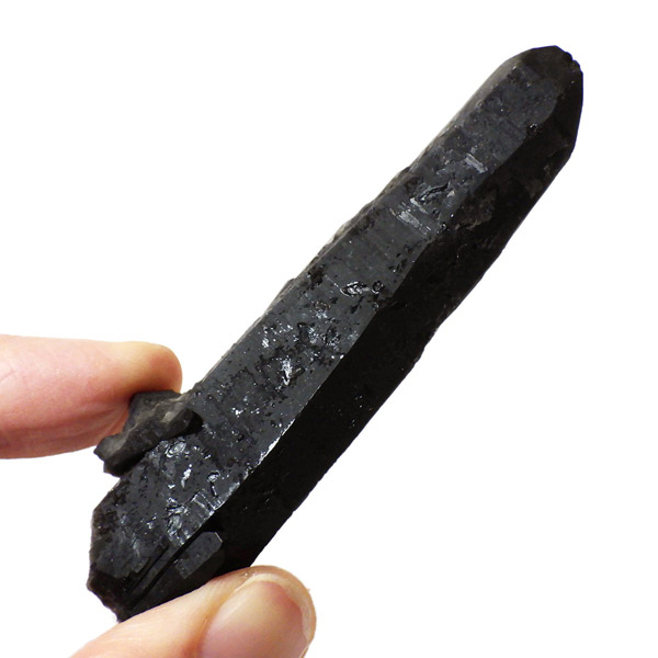 内モンゴル産のモリオン原石ポイントです。 スモーキークォーツの中で、黒色が強く真っ黒な黒水晶をモリオンと呼びます。明確な境界の定義はありませんが、表面が黒光りするものをモリオンと呼んでいます。人によっては光を通すものをケアンゴームと呼ぶ場合もあります。モリオンは水晶の成長過程で微量のアルミニウムが放射性鉱物などの影響を受けると黒色に変色するといわれています。