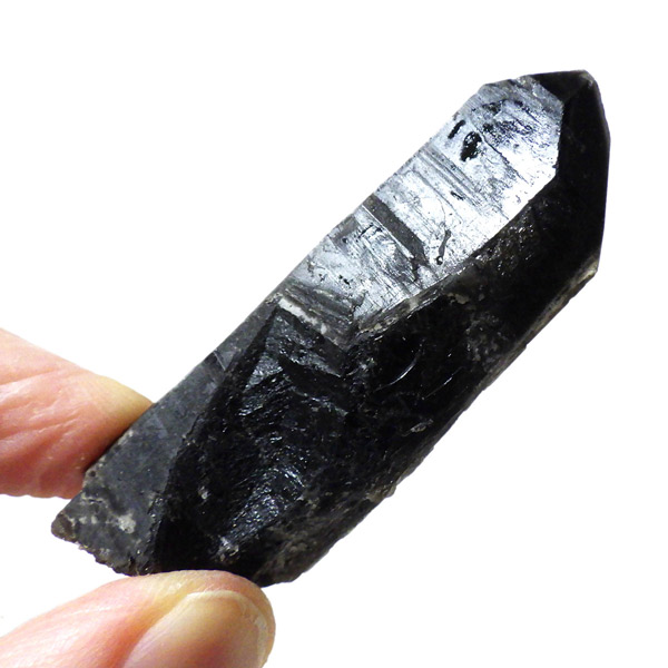 内モンゴル産のモリオン原石ポイントです。 スモーキークォーツの中で、黒色が強く真っ黒な黒水晶をモリオンと呼びます。明確な境界の定義はありませんが、表面が黒光りするものをモリオンと呼んでいます。人によっては光を通すものをケアンゴームと呼ぶ場合もあります。モリオンは水晶の成長過程で微量のアルミニウムが放射性鉱物などの影響を受けると黒色に変色するといわれています。