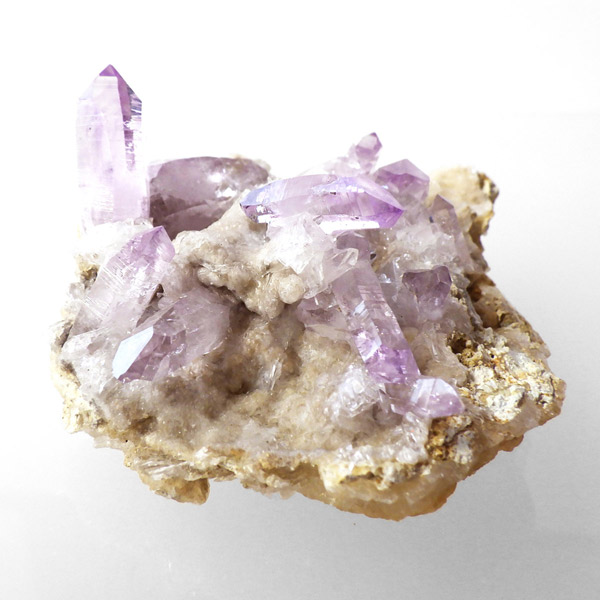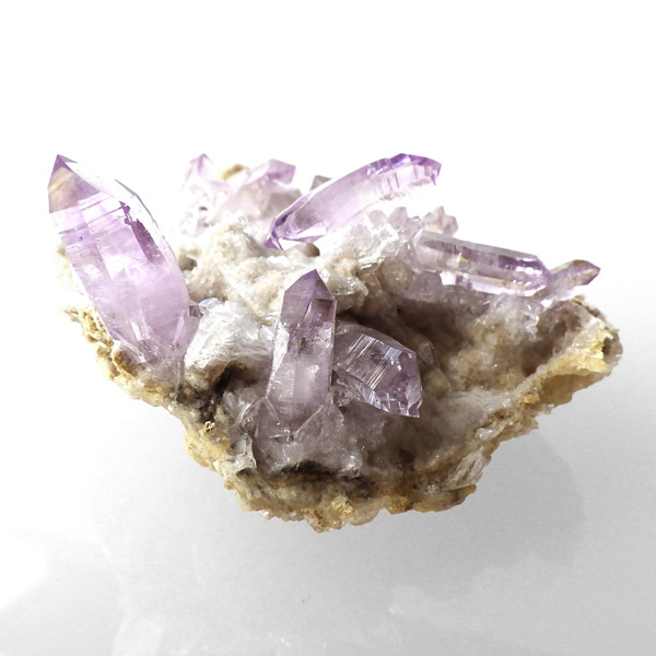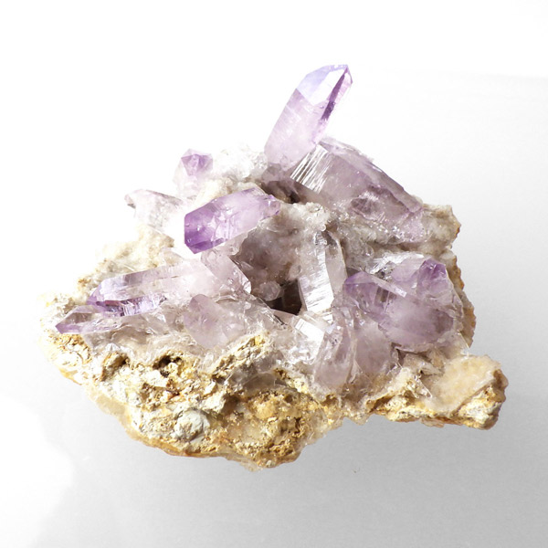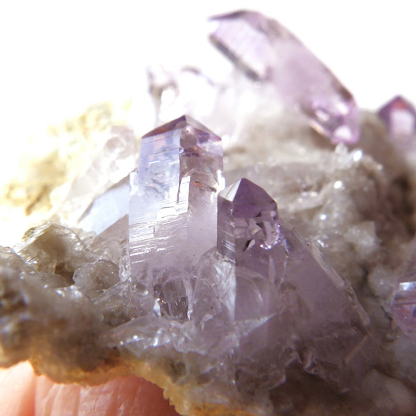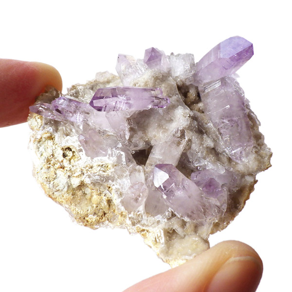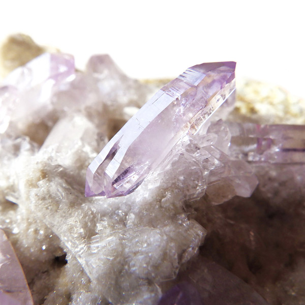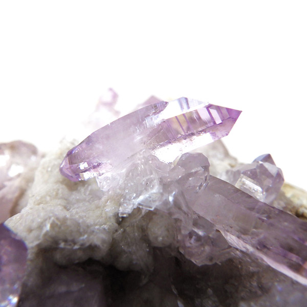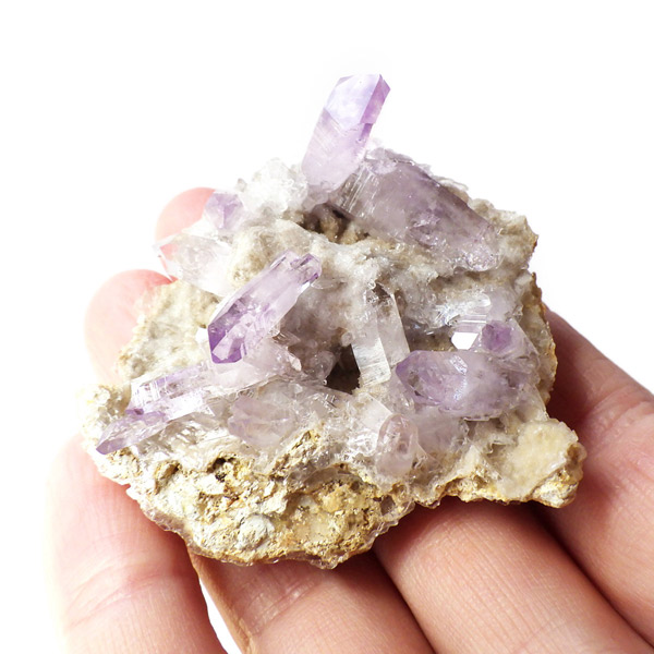 ブラジル産やウルグアイ産などのアメジストとは異なり、ポイントが細長く形成されるのが特徴です。 また、ベラクルス州は大変透明度の高いアメジストが産出され、「世界一高透明で美しいアメジスト」と言われています。産出量が非常に少なく、更に鉱山はすでに閉山されていることから、現在出回っているものは大変希少となります。 淡くてほんのりとしたパープルが先端に向かって濃くなるのも特長です。 何とも言えない清純さを兼ね備えており、心の底から綺麗だなぁと感嘆させられる原石です。