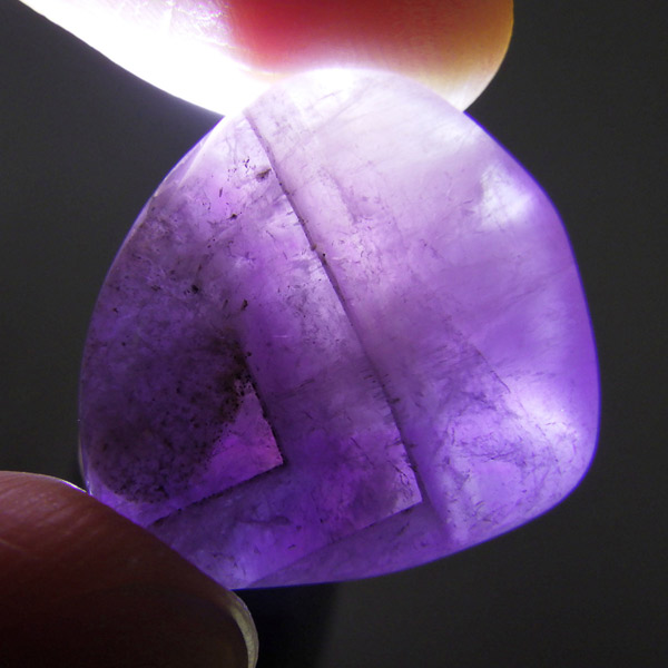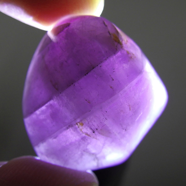 アメジストを中心に、金(ゴールド)・銀(シルバー)・プラチナ・鉄・銅・ニッケル・ゲーサイト・カコクセナイト・チタナイト・レピドクロサイト・エピドート・ルチル・アジョイト・パイライト・ヘマタイト・マグネタイト・パイロリューサイト・リモナイト・スファレライト・ガイアリト・ボルナイト・コヴェライト・チャルコパイライトなど。 また、隕石の衝撃によって、成長途中のアメジストに他の鉱物が溶解、混合し、石表面に付着することで生成された石とも言われています。産出量が少なく希少価値が高いため、あまり市場に出回らない鉱物の一つです。