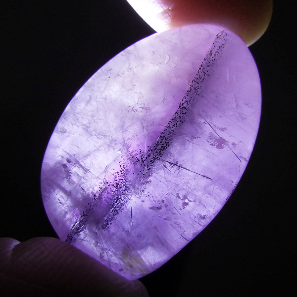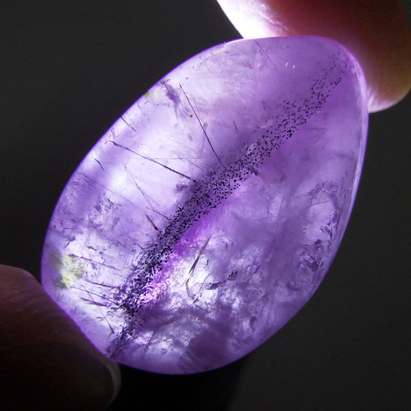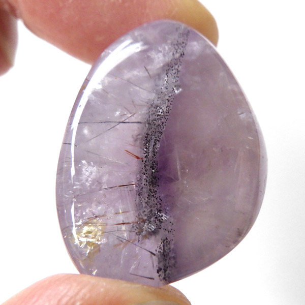 アメジストを中心に、金(ゴールド)・銀(シルバー)・プラチナ・鉄・銅・ニッケル・ゲーサイト・カコクセナイト・チタナイト・レピドクロサイト・エピドート・ルチル・アジョイト・パイライト・ヘマタイト・マグネタイト・パイロリューサイト・リモナイト・スファレライト・ガイアリト・ボルナイト・コヴェライト・チャルコパイライトなど。 また、隕石の衝撃によって、成長途中のアメジストに他の鉱物が溶解、混合し、石表面に付着することで生成された石とも言われています。産出量が少なく希少価値が高いため、あまり市場に出回らない鉱物の一つです。