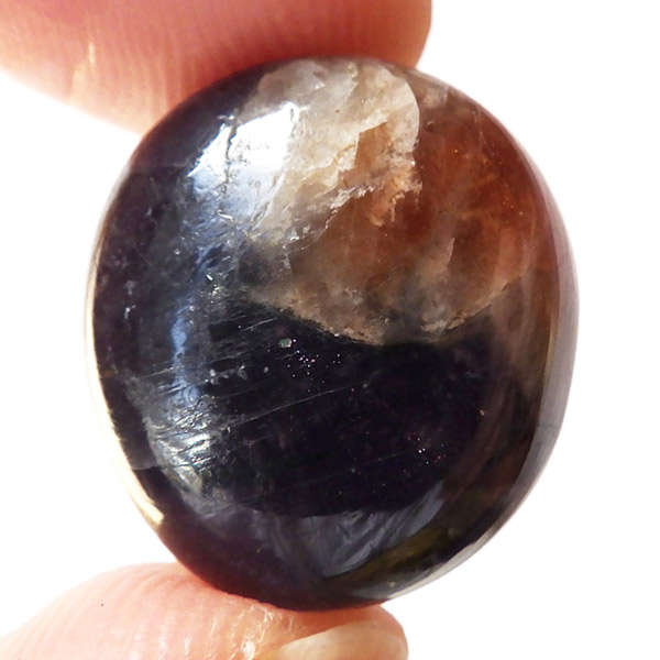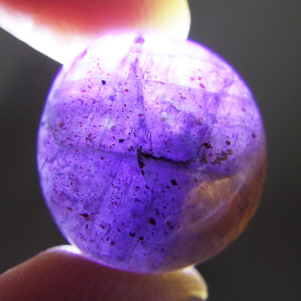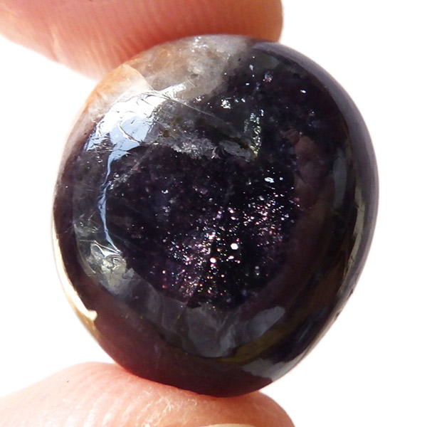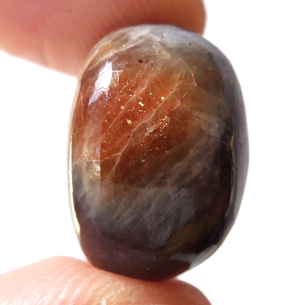 サンストーンの部分はもちろん、アイオライトの部分も内包物が見られ、アベンチュレッセンス効果でキラキラと輝いて見えます。