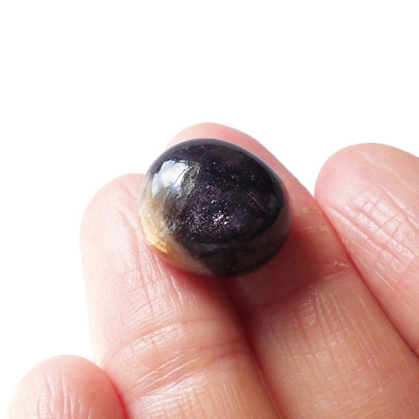 インド産アイオライトサンストーンのタンブルです。ネイビーのアイオライトとオレンジのサンストーン、この二つが混ざり合う大変レアな石です。更に、アイオライトとサンストーンがここまでハッキリ分かれているものは、見た目にもきれいで魅力的です。
