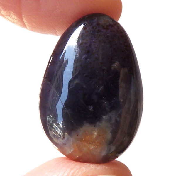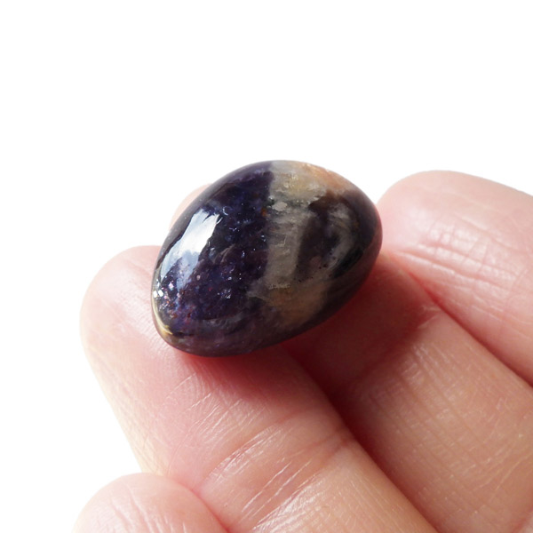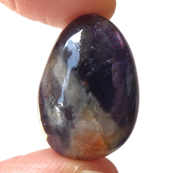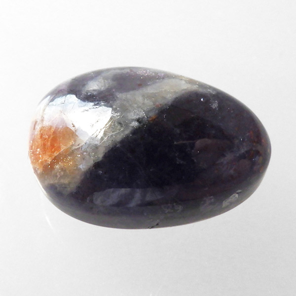インド産アイオライトサンストーンのタンブルです。ネイビーのアイオライトとオレンジのサンストーン、この二つが混ざり合う大変レアな石です。更に、アイオライトとサンストーンがここまでハッキリ分かれているものは、見た目にもきれいで魅力的です。