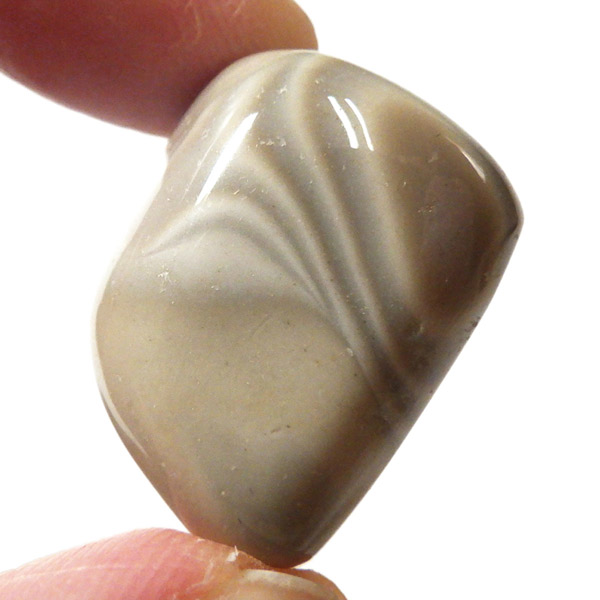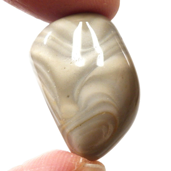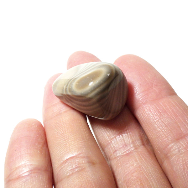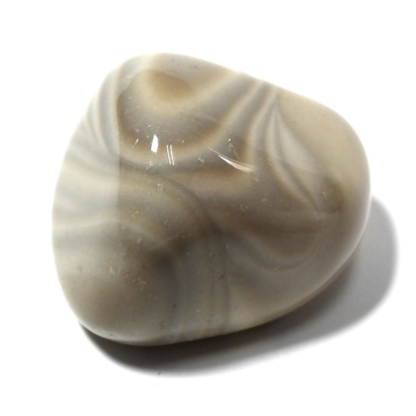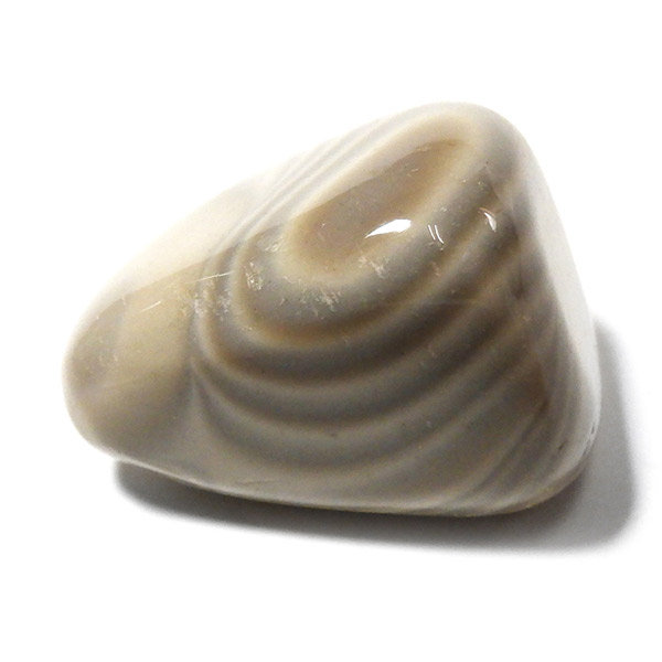 ポーランド産フリント、タンブルです。 一般的にフリントやフリントストーンの名前で流通している石で、縞模様がきれいに出ているものはストライプフリント、バンデッドフリントとも呼ばれています。フリントはケイ素等で構成される堆積岩の一種です。緻密な岩石で非常に硬く、古来より矢じりや火打石として使用されていた石です。各地で産出される石ですが、ポーランド産のフリントは特に縞模様が綺麗でアクセサリーやお守りとしても人気です。