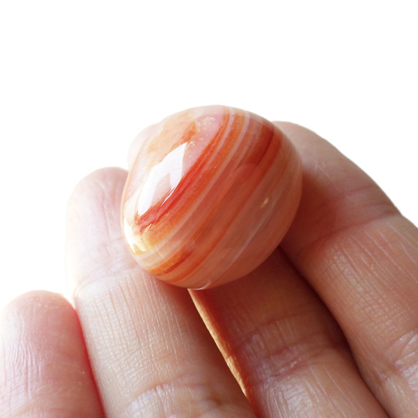 レッドアゲートは丸く研磨すると縞模様が眼のように浮かびあがるという意味合いから、「赤天眼石」と呼ばれることもあります。サードオニキスのこの特徴的な縞模様は、天眼石と同じく人や物事を見極める意味合いもあります。また、魔除けとして、悪意や嫉妬など、他人から悪意をもたれたときにも力を発揮してくれるといわれています。更に、人間関係全般に幸運をもたらし、恋人や夫婦などパートナーシップを安定させ、よい友情を引き寄せる効果があるといわれています。