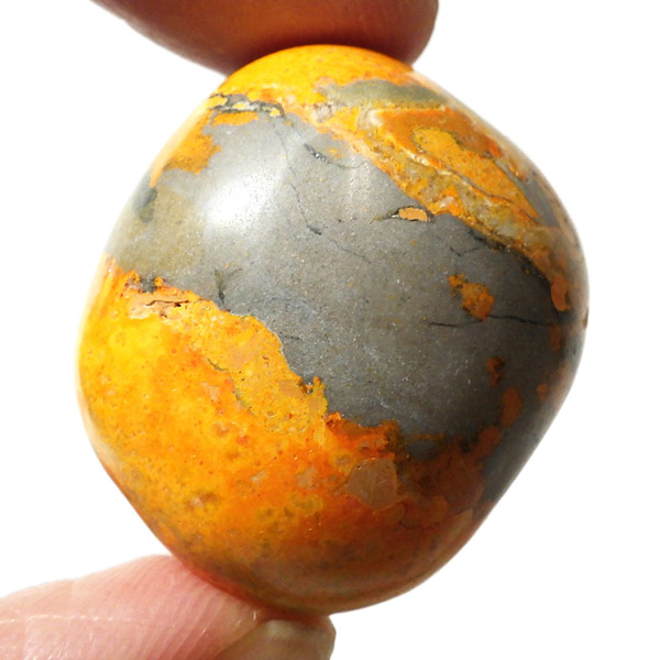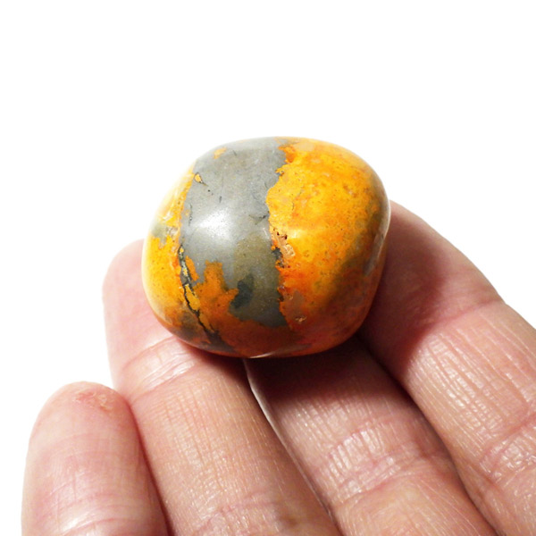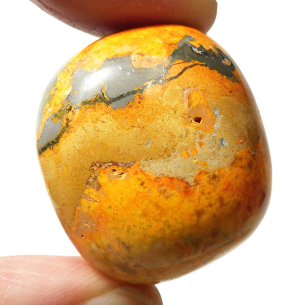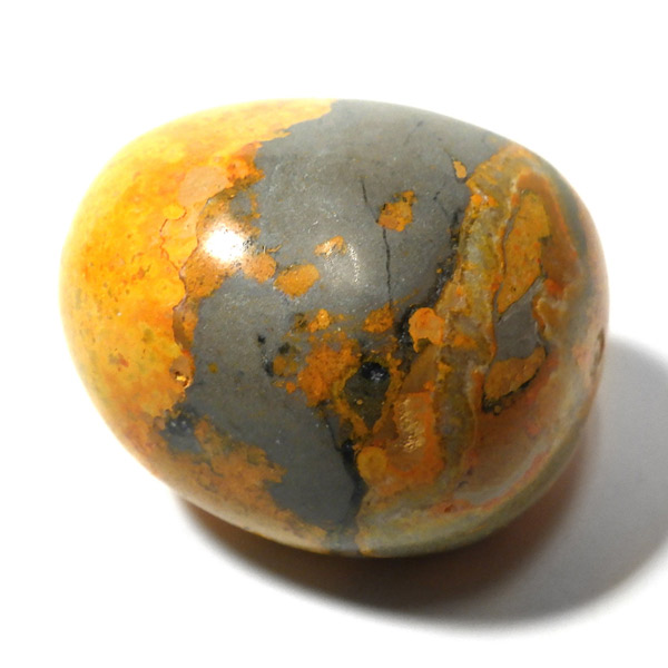 インドネシア産のバンブルビージャスパー、タンブルです。発色とグラデーションが美しいものを選りすぐりました。バンブルビージャスパー、別名エクリプスとも呼ばれます。「バンブルビー」とは、ミツバチの一種のマルハナバチのことで、黒地にイエローの模様からこの名前がつけられました。また、「エクリプス」とは、皆既日食を意味しています。バンブルビージャスパーは特徴的な黄色、オレンジ、黒の縞模様を持つ繊維状方解石でできています。主に硫黄がビビッドな発色を生み出すと言われ、黒い模様は黄鉄鉱によって生じているとされています。