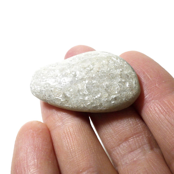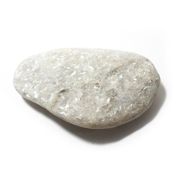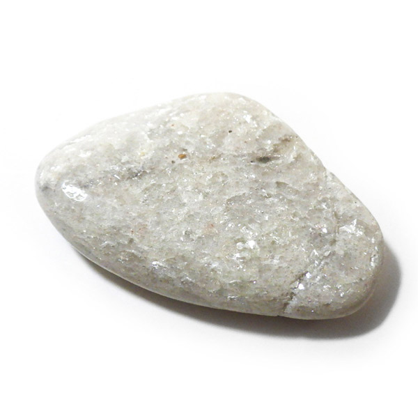 ブラジル産のホワイトアベンチュリン、タンブルです。クロム雲母によるグリーンのアベンチュリンが一般的ですが、白雲母を内包している石がホワイトアベンチュリンと呼ばれています。アベンチュリンは雲母鉱物が含まれるためキラキラと自然な輝きを持っています。輝きがなければ、この石はスノークォーツになります。